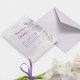 Cartão de noiva azul púrpura Lilac lavanda floral, empoeirado, com um buquê elegante de botões azuis, Marinhos, roxos e de flores de rosa a cores lilás. A parte de trás do convite tem um belo floral de lavanda com a noiva e o monograma do noivo.