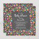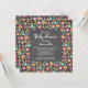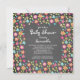 Bonito convite para chás de fraldas florais com um quadro de flores com flores cor-de-rosa, azuis-turquesa, amarelas e cor de laranja sobre fundo de quadro. Sacudir nosso chá de fraldas moderno para ver a correspondência de volta para um especial extra