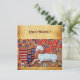 Clássica, elegante pulmão de líbios e motivos heráldicos, espirais florais vermelho azul, flores com um unicórnio branco sentado, elaboração digital de uma miniatura medieval antiga .Fácil de personalizar para festa de formatura, aniversário, aniversário de casamento ou qualquer evento que você queira.