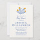 Flores de Folhas Escandi Bonitas no Convite de Chá de fraldas Azul