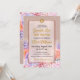 Edite o texto para personalizar este anúncio elegante do Bat Mitzvah da sua filha. Nossos jovens artistas gráficos judeus criaram este convite. O Magen David (Estrela de David) e o quadro metálico de ouro-rosa flutuam sobre um fundo de coloração aquosa de flores e rosa dourada. Não é utilizada qualquer folha de ouro ou brilho real nesta fabricação do cartão. Você ficará impressionado com a alta qualidade e a impressão a cores vívidas. Mazal Tov!