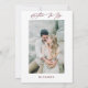 Anuncie sua Chá de panela com estes cartões lindos que apresentam o texto "Chá de panela" em um roteiro de caligrafia a cores arrojadas e tipografia decorativa contra um florescimento de flores de jardim e verde. Personalize facilmente as suas informações pessoais na frente e as suas fotografias e sobrenomes especiais no verso.