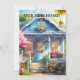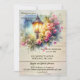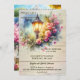 Convite de festas de aquecimento doméstico com pintura aquosa de uma lanterna com flores festivas. No verso está o espaço para sua própria foto (opcional). Perfeito para uma casa aberta ou para uma comemoração de casa.