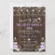 Luzes de Corda de Madeira Antiga Encantadora; Depois que dissemos SIM, vamos fazer um churrasco. Design de cartão único com luzes de corda, cantos de flores de lavanda em aquarela elegante, "EU CASEI" com um anel substituindo a letra "O", em um fundo de madeira de celeiro marrom. Use a ferramenta Personalizar para adicionar suas informações. Veja também minha Coleção de Flores de Lavanda.