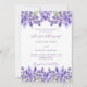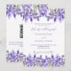 Um fundo branco decorado com flores lavandas. Personalize e seus nomes e detalhes. Voltar: adicione o URL do seu site de casamento ao código QR para obter detalhes e/ou RSVP.