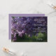 Convide os convidados a continuar a festa na manhã após a cerimônia de casamento com o adorável Convite para Brunch Pós-Casamento com Flores de Lilás Roxo. Este elegante convite personalizado para Café da Manhã ou Almoço Pós-Casamento apresenta uma fotografia floral de flores de lilás roxo na árvore com um fundo verde natural desfocado.