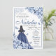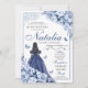 Elegante Dusty Blue & Marinho Floral Quinceanera Convite de Aniversário