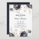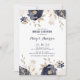 Convide a família e os amigos para seu almoço noivo com este convite elegante. Apresenta flores e folhagem azuis e marfim marinhos, com folhas de golfe falso e acentos de brilho. Personalize adicionando seus próprios detalhes de evento. Você também pode adicionar uma foto ou outra imagem no verso do convite. Este convite floral é perfeito para eventos de primavera e inverno.