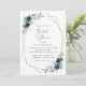 Convide amigos e família de estilo e dê o tom para o seu dia especial com este chá de panela encantador. Design apresenta flores marinhos e azuis de cor d'água, tela verde e estrutura dourada sobre fundo branco.