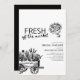 Celebrar a noiva com este chá de panela preto e branco "Fresco do Mercado" A bela tipografia e desenhos em preto e branco dão uma vibração no mercado de flores francesas. Possui um bonito buquê floral embrulhado e um carrinho de flores. Perfeito para um chá do tipo jardim ou fazendeiros com charme rústico. Veja a coordenação de itens no nosso compro, Encantado Finch.