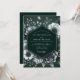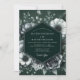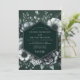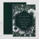 Crie uma atmosfera dramática e sofisticada com este elegante design botânico. Um arranjo exuberante de anêmonas brancas e cinzas, rosas e folhagens delicadas florescem contra um fundo esmeralda profundo. A obra de arte floral monocromática oferece uma estética sombria e de alto contraste para uma união verdadeiramente memorável.