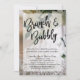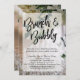 Em segundo plano está uma foto de um conjunto de óculos de champanhe vazios com flores brancas elegantes acima; esta imagem pode ser substituída por outra de sua escolha, se preferir. Sobre uma camada de retângulos arredondados translúcidos, coloquei todos os detalhes. "Brunch & Bubble" é um gráfico reproduzido com um script moderno de escrita manual. Adicione seus detalhes pessoais aos campos de modelo. 105 //