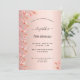 Um convite moderno e bolsa mensageifesta de aniversario elegante para uma festa de aniversário 70. Um rosa de ouro cônico é metálico, com aspecto de folha de fundo decorado com prigos botânicos, florais e folhagem cor-de-rosa e rosa. O nome é escrito com um script de estilo manchado de tendência com alternâncias. Texto preto. Para manter as hastes, exclua apenas o nome da amostra, deixe os espaços ou emoji na frente e depois do nome. Traseira: fundo metálico falso rosa dourado.