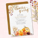 Convite jante de Ação de Graças - perfeito para o outono, estação de abóbora e ação de graças. A design de aquarela apresenta folhas de outono, flores, óculos de vinho e abóbora em cores vivas. Fácil de editar a redação do modelo.