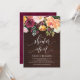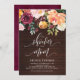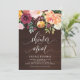 Vamos chá da futura mãe! Convide convidados com este convite de chá de fraldas floral rústico. Apresenta a terra floral de cor d'água, com pedras laranja, vermelha e marfim, sotaques de margarina, rosa e verde com fundo de madeira falsa. Personalize adicionando os detalhes do evento. Este convite floral no outono é perfeito para chás de fraldas do outono e do jardim.