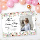 Este convite de festas surpresa de aposentadoria mostra uma graciosa borda floral de aquarela enfeitando o topo e o fundo e permitindo espaço para uma foto do aposentado. Com tons de pêssego e roxo suaves, ele oferece um charme delicado e feminino.