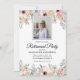 Este convite de festas de retirada fotográfica mostra uma graciosa borda floral de aquarela enfeitando o topo e o fundo do convite vertical. Com tons de pêssego e roxo suaves, ele oferece um charme delicado e feminino.