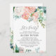 Este convite de flores de peônia românticas para festa é perfeito para um evento elegante. O design floral apresenta flores em aquarela em tons de rosa claro, pêssego e branco.