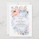 Pêssego pastel gordo flores de aquarela poeirada convites à graduação azuis empoeirados