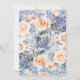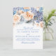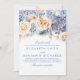 O fabuloso convite de casamento elegante para o casamento azul e pêssego. Buquê floral de hydrangeas azuis e rosas de pêssego - parece pastel e poeirento e combina azul macio com tons de pêssego suavizados.