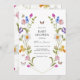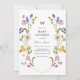 Convite de chá de fraldas Floral para homenagear a mãe! Design apresenta uma borda de flores e borboletas coloridas de primavera pastel. Personalize com suas informações ou clique em "Clique para personalizar mais" para editar estilos de fonte, tamanho e cores.