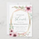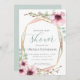 Chá de fraldas | Moldura de estilo Terrarium com flores de primavera em folhas verdes de eucalipto cor-de-rosa e sage-claro ao redor da moldura. Uma combinação de caligrafia de script combinada com um layout de texto minimalista e contemporâneo faz dele um pacote de casamento de estilo de tendência. Design criado por © WhimsicalArtwork™. Isto também faz parte de uma coleção de artigos de papelaria de casamento com acessórios de casamento iguais também chá de fraldas e outros artigos de papelaria de ocasião. Fique à vontade para nos contactar se precisar de ajuda.