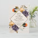 O convite de casamento de na moda de outono feito em um falso marfim ondulado como textura. Uma área de texto em forma de diamante de marfim moldada em forma de marfim, de cor castanha, tem flores roxas e ouros amarelas com erva-pampas e penas coloridas, decorando o topo e o fundo. Personalize todo o texto para o seu dia especial. Os produtos correspondentes estão disponíveis.