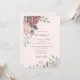 Um elegante design de aquarela de grandes rosas em tons de rosa claro sobre um fundo azul marinho. A parte traseira do cartão tem um pequeno arranjo floral no centro. Você pode adicionar detalhes no menu "editar design". Este convite é parte de uma bela suíte de casamento que pode ser totalmente personalizada.