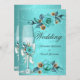 Convites Flores de Rosas de Champanhe Azul-Teal de Casament