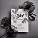 Coleção "Bebê Gótico" - uma mistura única de flores delicadas e crânios sujos, elegantemente trabalhados em preto clássico e branco. Abrace o pouco convencional com nossos convites para chuveiros de bebês e decoração, perfeitamente projetados para aqueles que apreciam a beleza em contrastes. Quer estejamos a celebrar a chegada de um pequeno ou a planejar um chá de fraldas como nenhum outro, a nossa linha de inspiração gótica adiciona um toque de mistério e encanto à vossa ocasião especial.