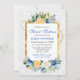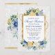 Convites Flores de Verão azuis e amarelas, folha de ouro 16
