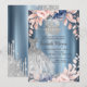 Glitter prateado elegante pingava, e vestido elegante em um fundo metálico azul.