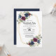 Lindas flores de aquarela em cores marinho, burgundy, brancas com uma estrutura geométrica de ouro e um roteiro de caligrafia moderno. Perfeito para casamento ou evento especial no estilo. Personalizado com seu próprio texto especial e use-o para o partido ou evento de sua escolha. Itens correspondentes estão disponíveis em nosso compro.