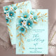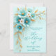 Convites Flores Douradas Brancas Azuis de Teal Azul Elegant