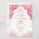 Elegante Bright Pink Flowers Dourada Girl Mis Quince Convite Mis Quince 15 Anos, 16ª Borboleta de Aniversário.