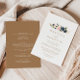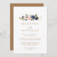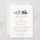 Felicite o seu clássico evento especial de casamento com as flores cor-de-rosa azuis douradas e o convite para o casamento. A design apresenta aquarela e flores azuis, rosa e verdes desenhadas à mão em belos buquês. Salve o papel, incluindo mais detalhes na parte traseira do convite em vez de em uma placa de gabinete separada.
