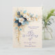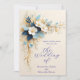 Convites Flores Douradas de Creme Azul de Casamento Elegant