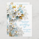 Convites Flores Douradas de rendas brancas azuis de Casamen