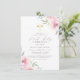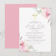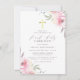 Um elegante design com flores cor-de-água rosa nos cantos superior direito e inferior esquerdo do convite. Seus detalhes personalizados da Santa Comunhão aparecem no meio de uma bela tipografia de roteiro. Essas placas se invertem a uma cor rosa.