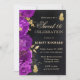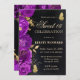 Elegante Mola d'água Roxo e flores douradas design com brilho dourado e fundo preto escovado metálico