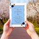 Convites Flores Douradas Elegantes Batismo Menino Azul