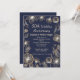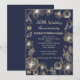 Flores douradas cintilantes em fundo azul meia-noite Convite de Aniversário de Bodas de 50 anos
