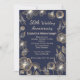 Flores douradas cintilantes em fundo azul meia-noite Convite para festa de 50º Aniversário de Casamento