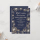 Flores cintilantes douradas em fundo azul meia-noite Convite de Aniversário de Casamento de 65 anos