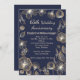 Flores cintilantes douradas em fundo azul meia-noite Convite de Aniversário de Casamento de 65 anos