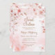 Flores Douradas rosa com Dourada Leve Cor-de-Leve Cor-de-rosa Doce 16 Convite Flores Modernas Rosa cor-de-rosa brilhante 16