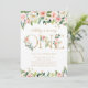 Convide familiares e amigos para o seu evento com este convite floral de primeiro aniversário. Apresenta cor de pêssego pincelada e flores brancas com letras florais de folha de ouro falsas. Personalize adicionando nomes, data, hora, local e outros detalhes. Este convite floral é perfeito para aniversários de primavera e jardim.