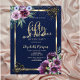 Quadro de ouro elegante, flores violetas e borda sobre fundo azul marinho.