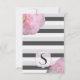 Flores rosa elegantes e bonito pintadas em convites de festas de noivado com padrões em branco, cinza e listras pretas. design muito clássico e sofisticado para o casal casado. Personalize com sua própria mensagem e monograma no verso. Todas as impressão design.