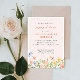 Flores, folhas, libélulas aquáticas, de cor aquosa, em paleta de cor aquosa, cor rosa, amarelo azul e verde, este convite Jante ao ensaio romântico e elegante.